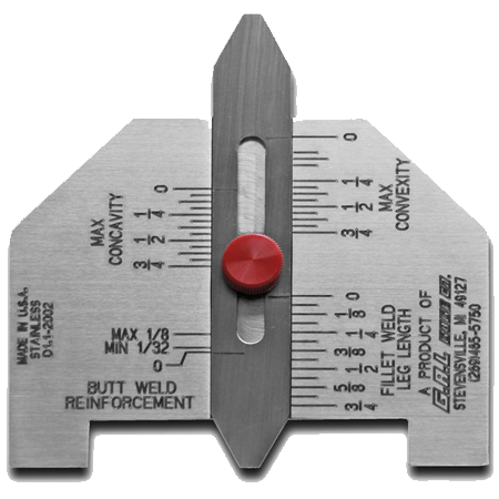 Escantilhão que determina o tamanho da soldadura e verifica a permissão para tolerâncias de convexidade e concavidade.